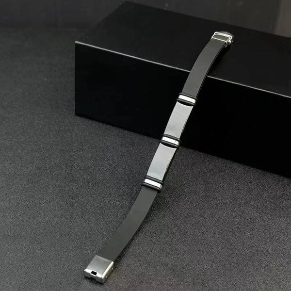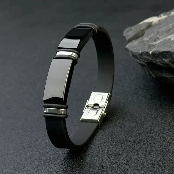 Elegant Black Silicone Bracelet with Metallic Detailing